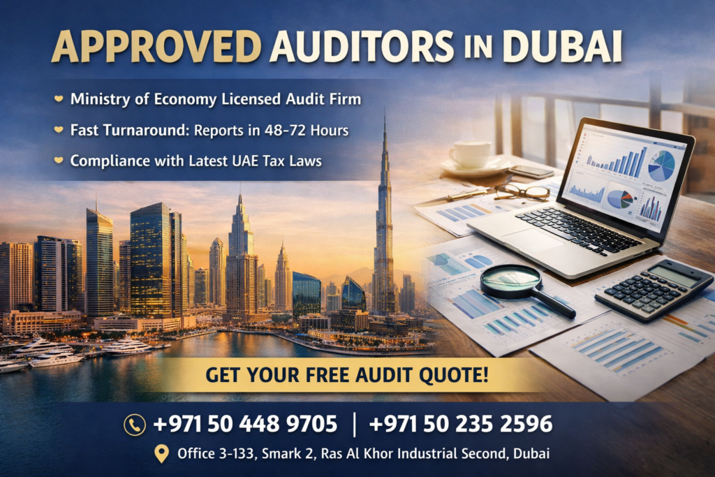 Auditors can be verified through the Ministry of Economy or respective Free Zone authority lists. QRS Global is officially licensed and recognized.